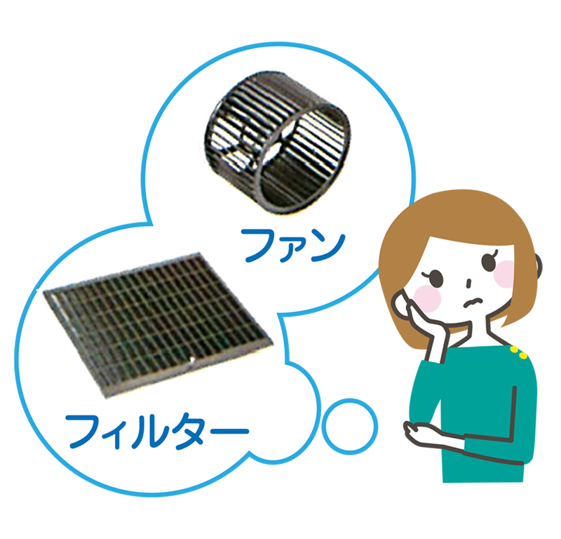 中のファンのお手入れ頻度は、半年に1回という方、こまめに2〜3ヶ月に1回という方もいらっしゃいますが、実際によく耳にするのは「年末の大掃除のときに1回だけ」あるいは「今まで一度もやったことがありません」という声です。また、非常に多いのが換気扇のフィルター(金属網)の上に市販の“不織布フィルター”を貼り、こまめに交換しているというケースです。実はメーカーとしては不織布の使用はおすすめしていません。必ず専用のフィルターをそのままでご使用することをお願いしています。理由は通気抵抗が大きくなり故障の原因になる恐れがあるためです。さらに金属製以外のグリスフィルターを使用した場合、火災の原因ともなる恐れがあります。換気扇は油煙を吸い取るための設備ですので吸引力がきちんと発揮されることも重要です。そのためには、フィルターやファンの定期的なお手入れが欠かせません。