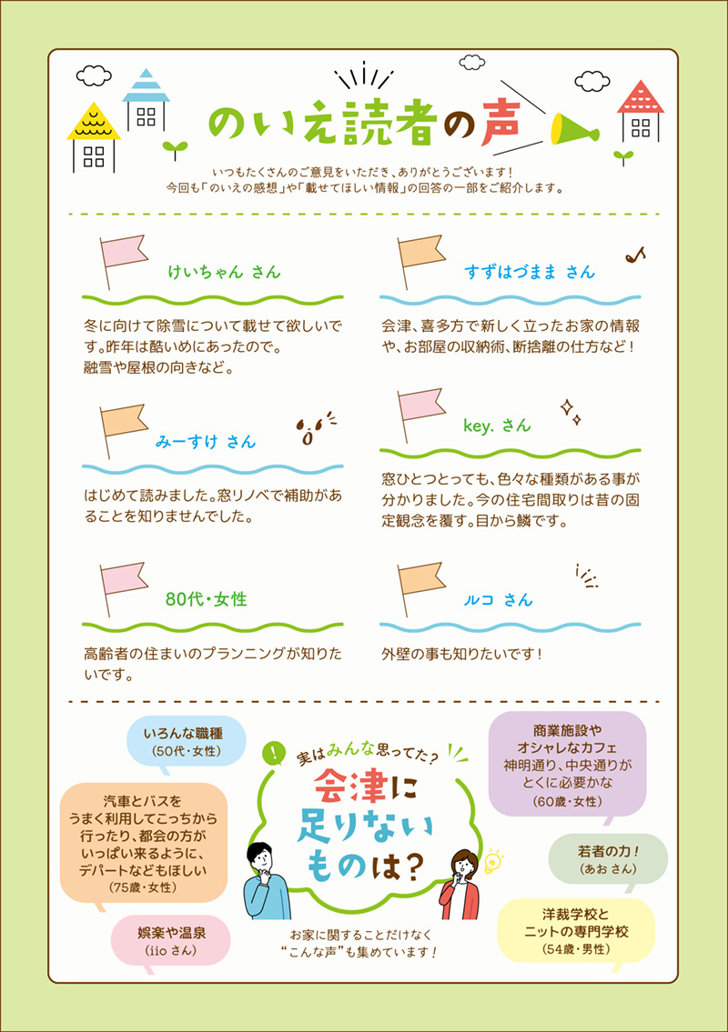 いつもたくさんのご意見をいただき、ありがとうございます! 皆さまの感想やご意見は、まだまだ反映しきれておりませんが、誌面を作る上での参考にさせていただいております。 編集部一同これからも頑張っていきますので、これからもよろしくお願いします!